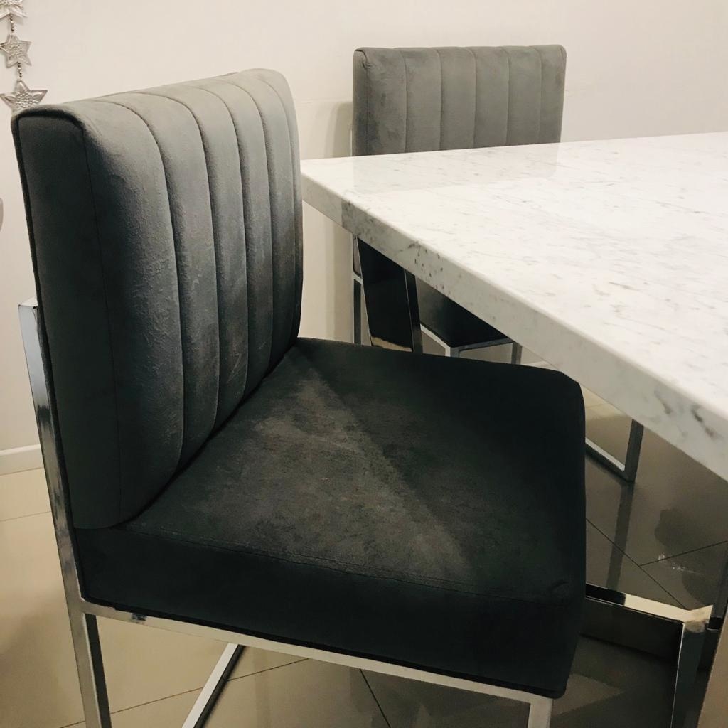 SILLA TAPIZADA EN PANA / LINO ANTI MANCHA Y TERMINACIÓN CROMADA